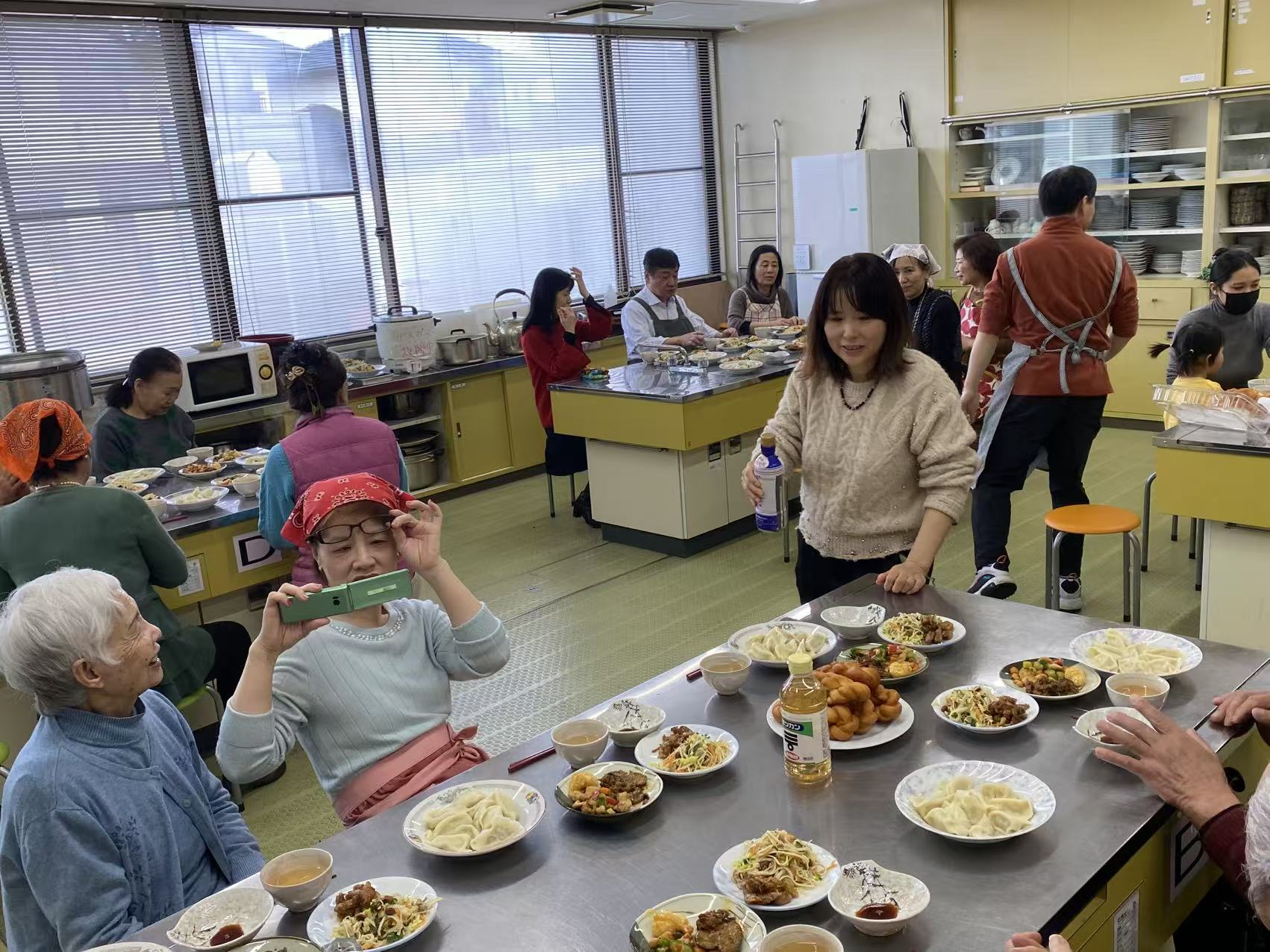 出来上がった料理を囲んでの食事も大いに盛り上がり、まさに「同じ釜の飯を食べる」交流会に。